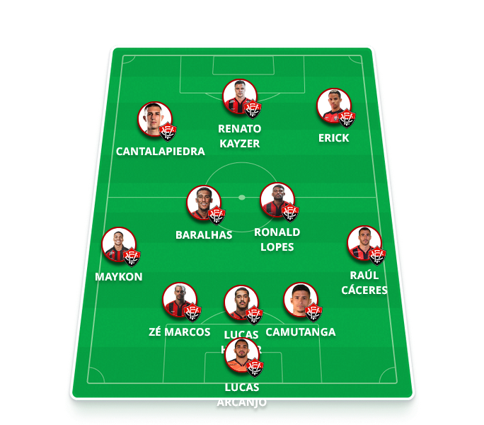 A escalação provável tem: Lucas Arcanjo, Lucas Halter, Camutanga e Zé Marcos; Raúl Cáceres, Baralhas, Ronald e Maykon Jesus; Erick, Aitor Cantalapiedra e Renato Kayzer.