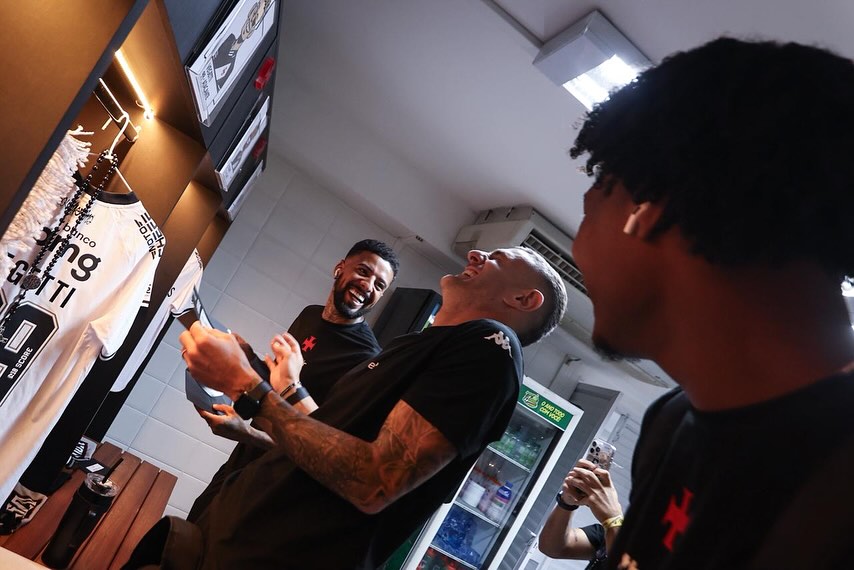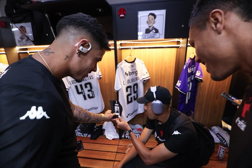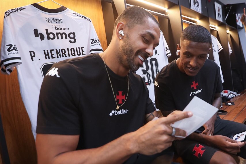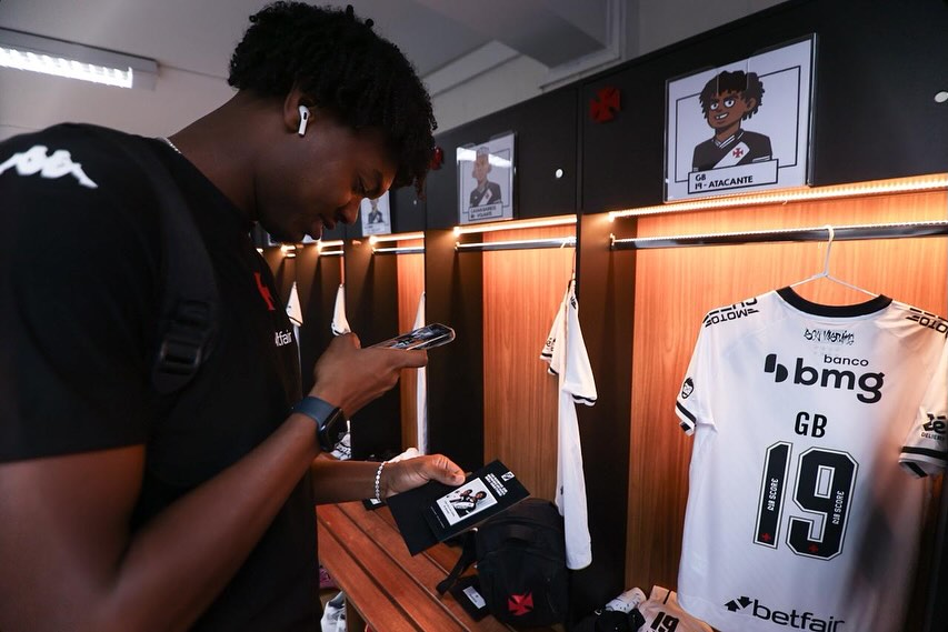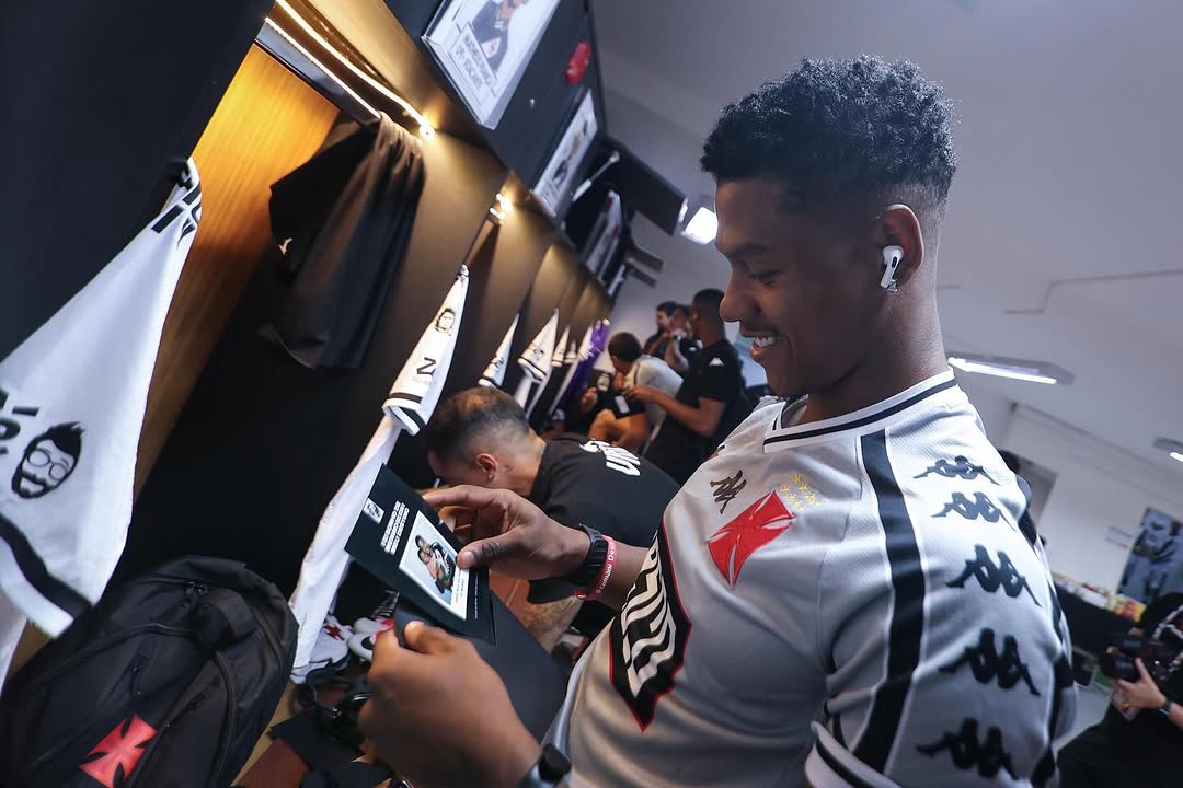 Na chegada do elenco vascaíno ao vestiário, uma ação especial: os jogadores receberam um card da sua versão adulta ao lado da versão criança 🥰 é mais uma homenagem do Vasco pelo Dia das Crianças.
