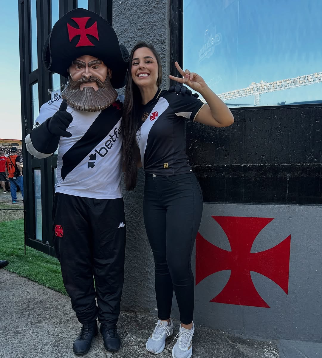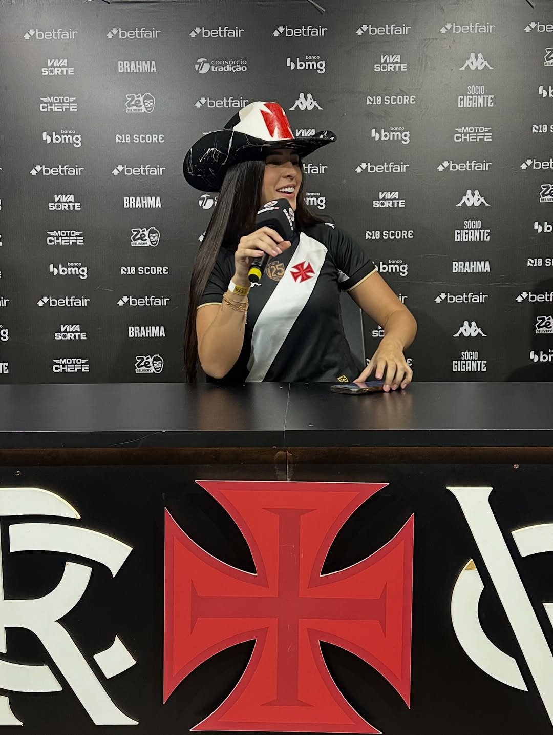 Cantora vascaína Luiza Andrade esteve em São Januário no jogo contra o Vitória; veja fotos e vídeos