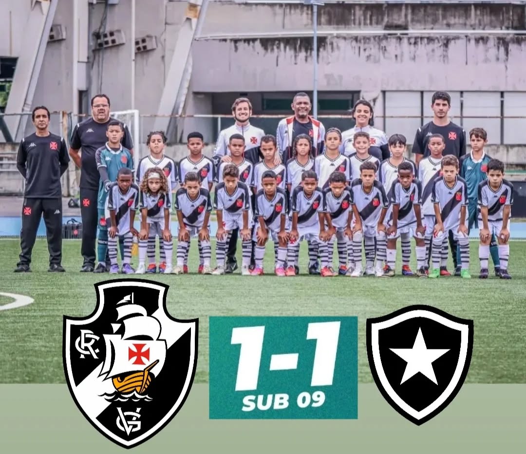 ◤✠◢ Pela 10ª Rodada da Taça Rio Sub-09, o Vasco empatou com o Botafogo pelo placar de 1 x 1, neste sábado (11/10/2025), no Anexo do Engenhão. 👊🏾⚽💢