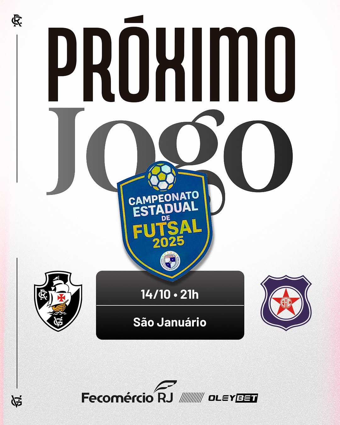 A próxima partida do Gigante é contra o Friburguense, nesta terça (14/10), às 21h, pela 6ª rodada do Estadual de futsal, em São Januário. Entrada gratuita! 💪🏟️