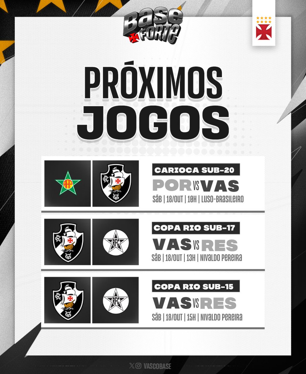 Sub-15, Sub-17 e Sub-20 do Vasco voltam a jogar no sábado; veja os jogos