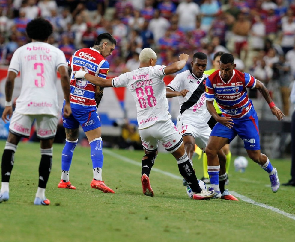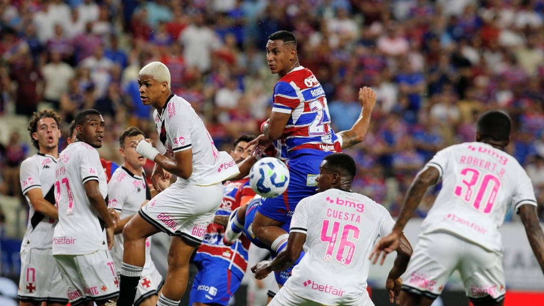 Foi uma noite de superação do Vasco no Castelão. Pouco depois da expulsão de Hugo Moura, Rayan, ainda no primeiro tempo, abriu a contagem. O Fortaleza martelou o segundo tempo inteiro, mas parou em Léo Jardim e viu David, já perto do fim, matar o jogo com o segundo gol: 2 a 0.