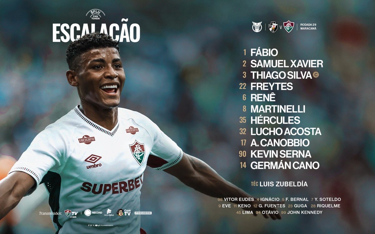 Veja a escalação do Fluminense para o jogo contra o Vasco; ex-vascaínos Fabio e Cano são titulares