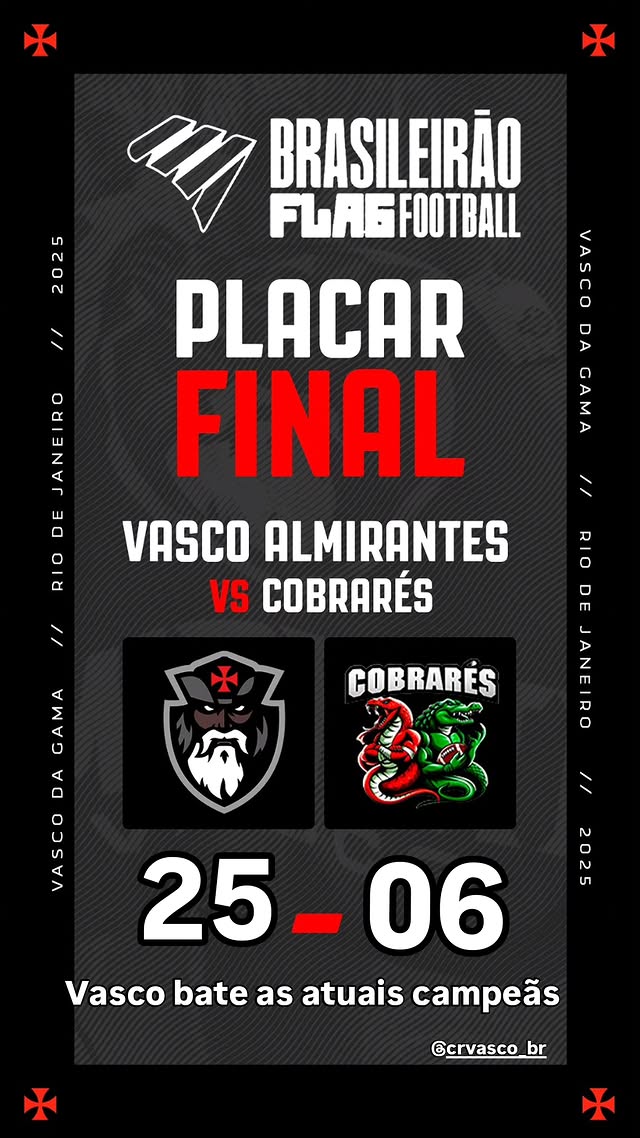 25/10/25 - Futebol Americano Feminino: Assista a Vasco x Cobrarés, pela Superfinal do Brasileiro de Flag