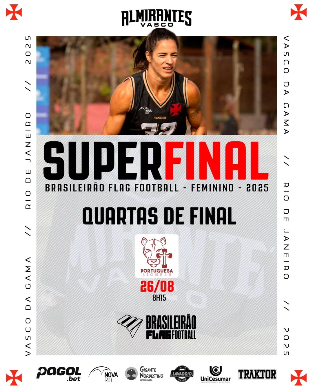 Futebol Americano Feminino: Vasco enfrenta a Portuguesa nas quartas da Superfinal do Brasileiro de Flag neste domingo às 8h15