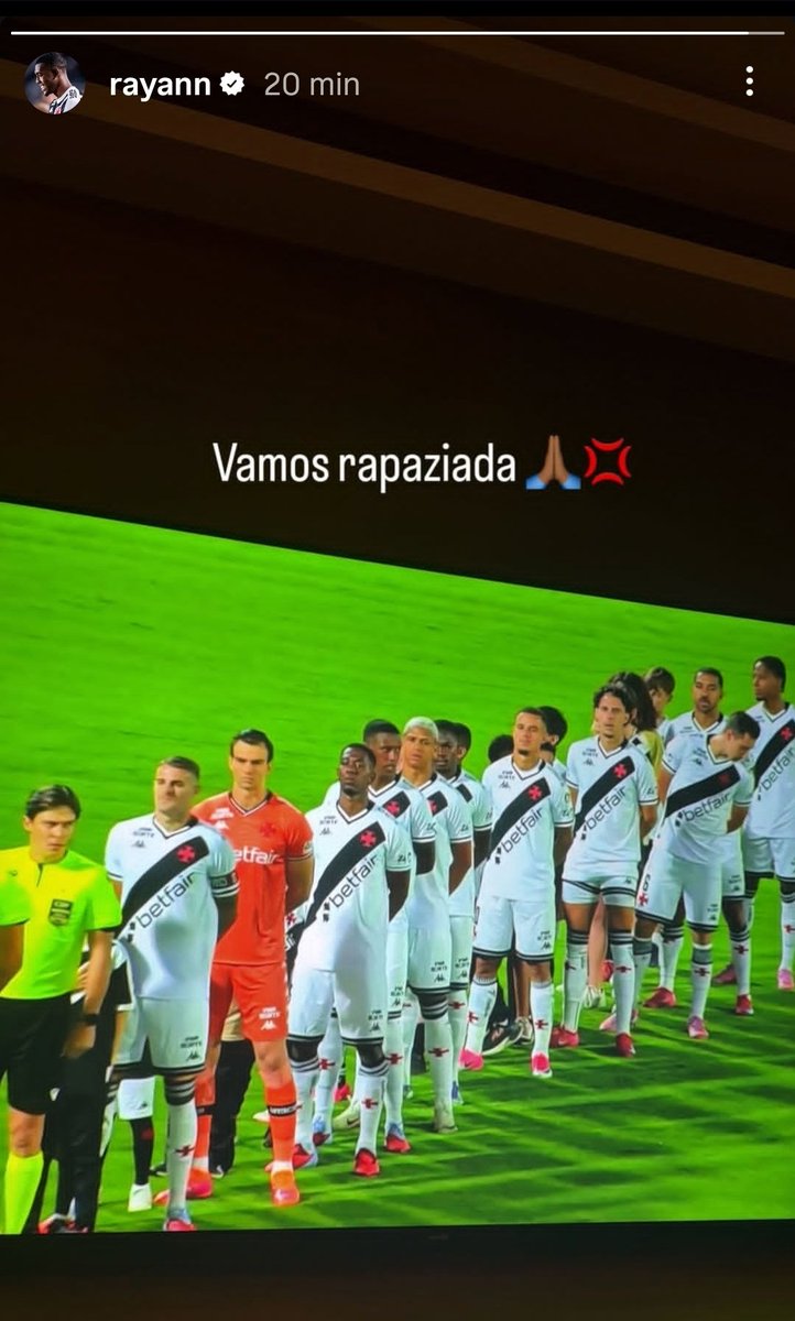 O atacante Rayan, que ficou de fora da partida por uma lesão muscular na coxa, está acompanhando o confronto entre Vasco e Bragantino e fez essa postagem nas redes sociais.