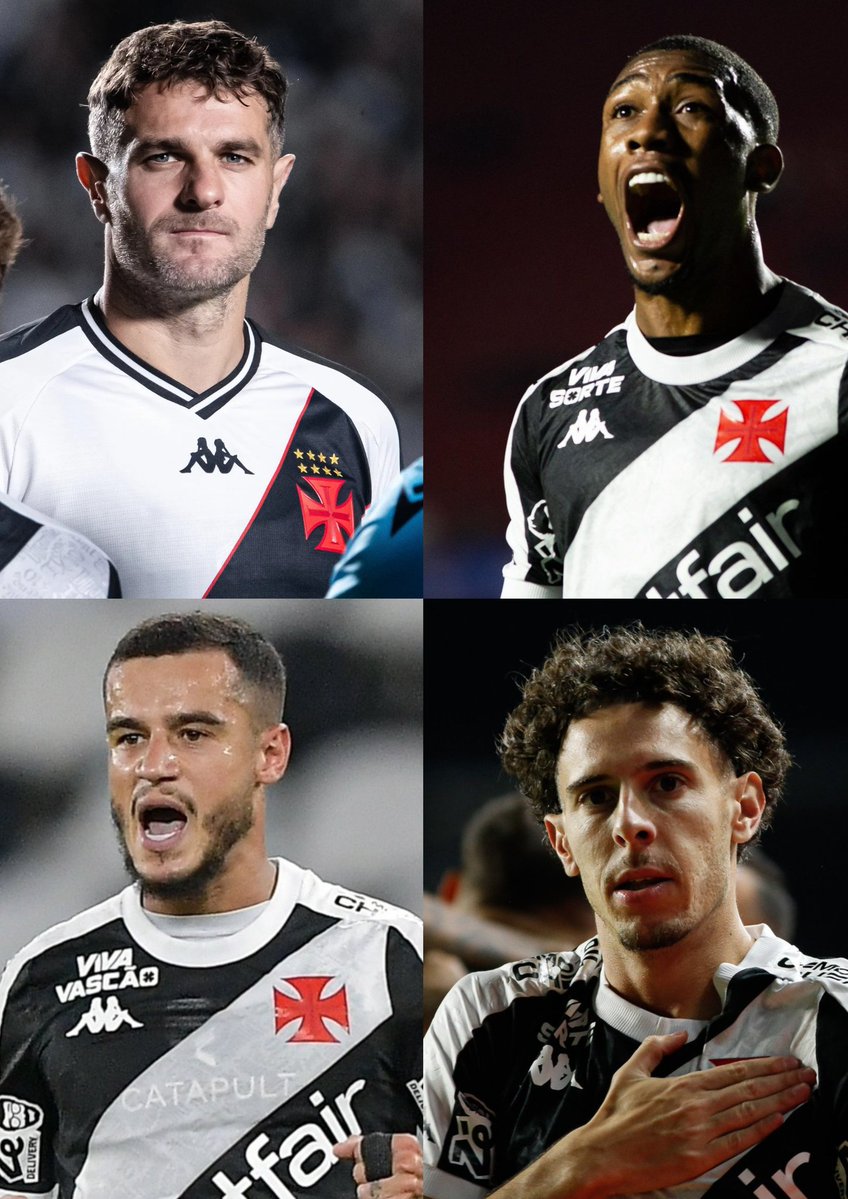 O Vasco tem atualmente quatro jogadores no sistema ofensivo com números importantes de gols marcados nessa temporada. São eles: Vegetti (26), Rayan (16), Coutinho (11) e Nuno Moreira (9). Somando, são 62 gols desse quarteto. Como um todo, o Vasco tem 85 em 2025.