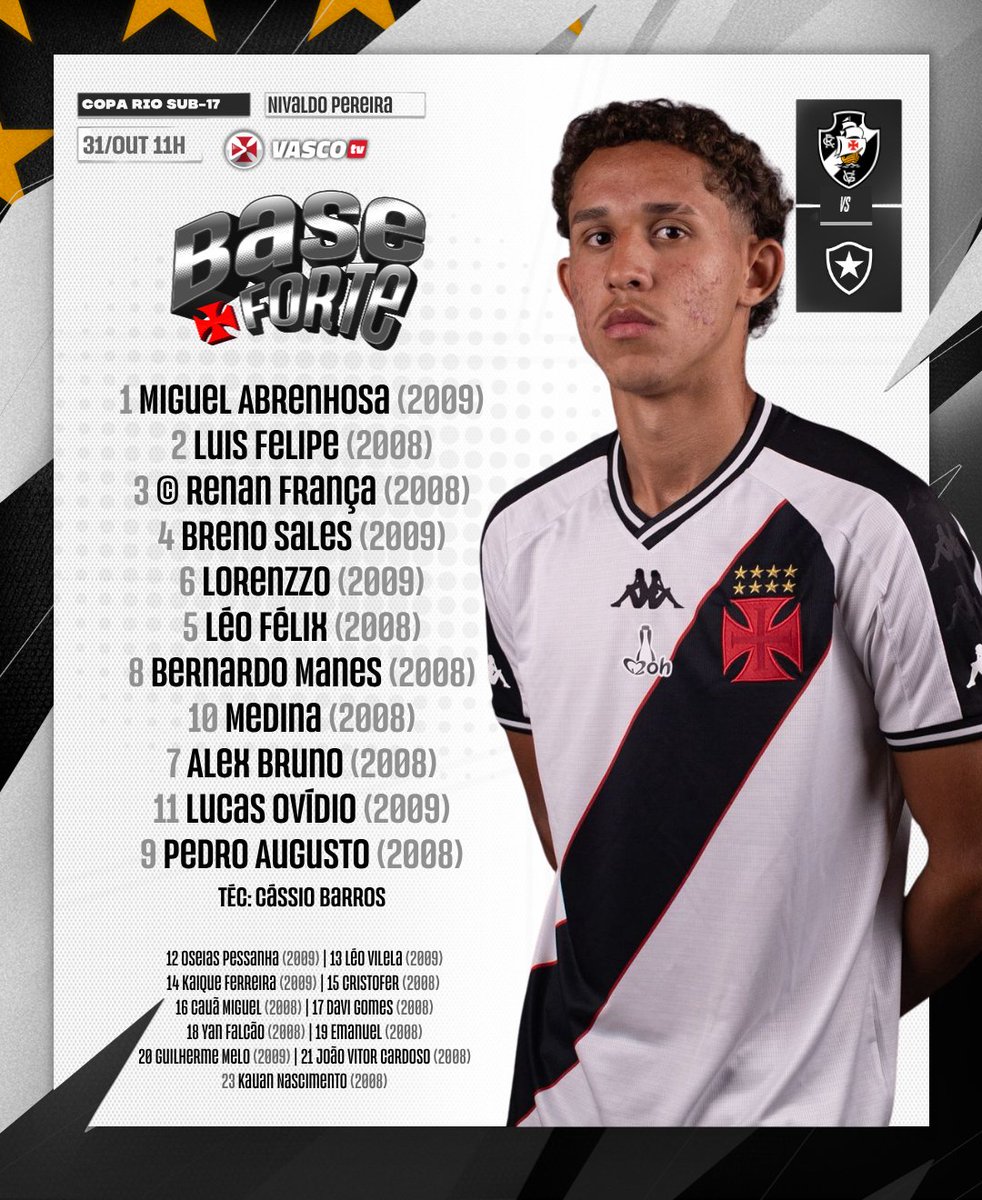 O Sub-17 está escalado para o duelo contra o Botafogo, às 11h, pela volta das semifinais da Copa Rio! 💢