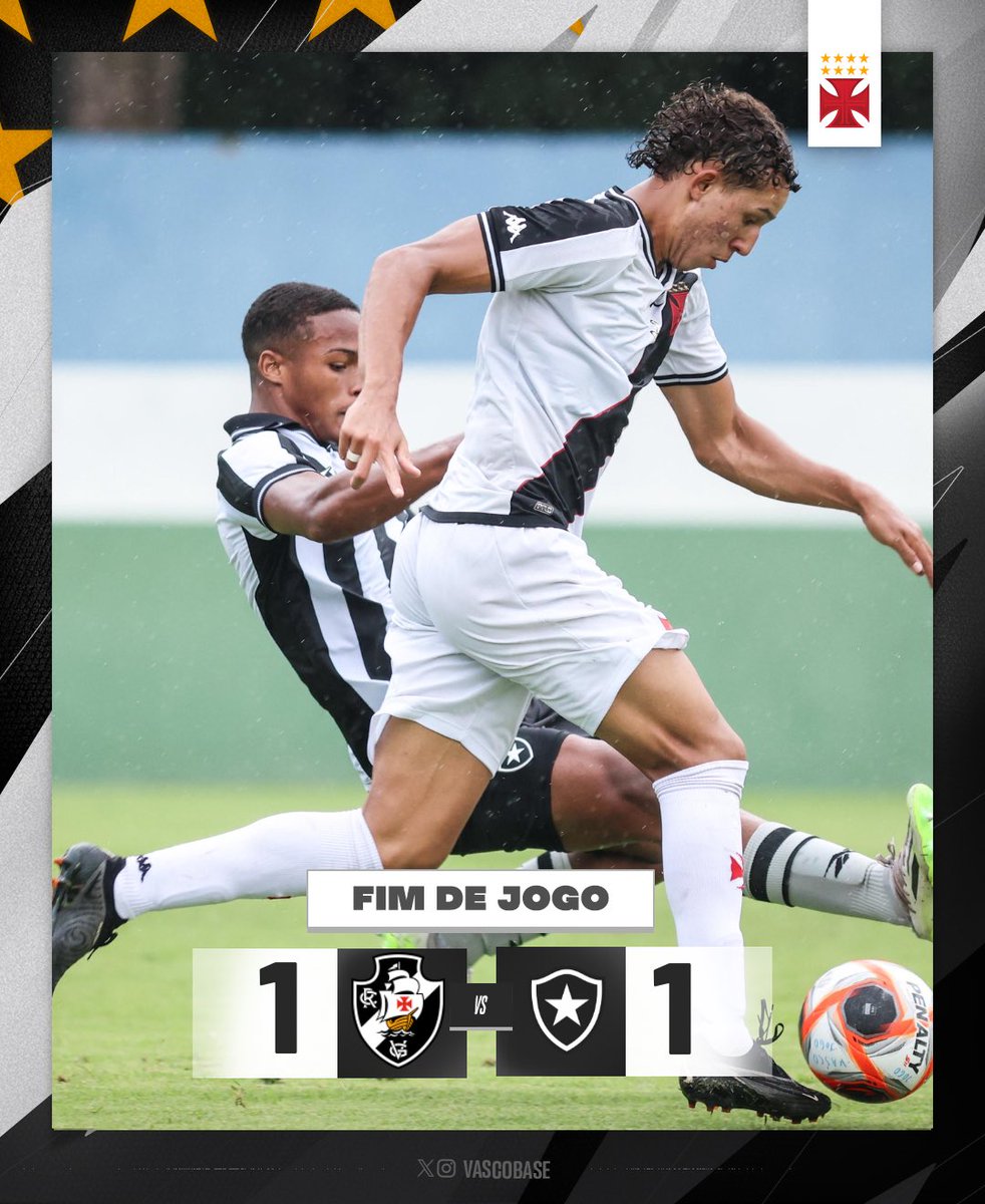 Vasco empata com o Botafogo por 1 a 1, no Estádio Nivaldo Pereira, pelo jogo de volta das semifinais da Copa Rio Sub-17, fechando o placar agregado em 3 a 1. O gol cruzmaltino foi marcado por Alex Bruno.