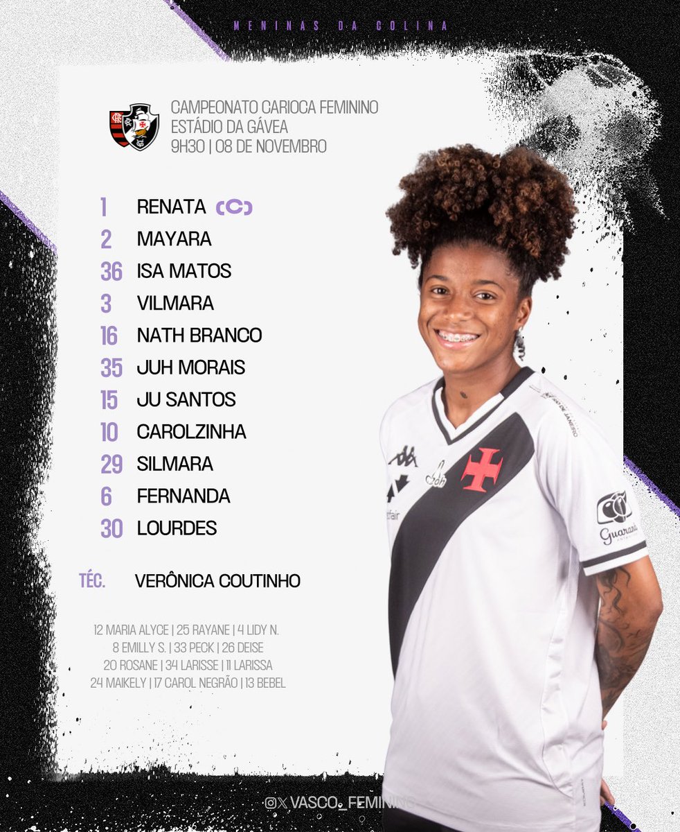 Feminino: Confira a escalação do Vasco para o jogo contra o Urubu