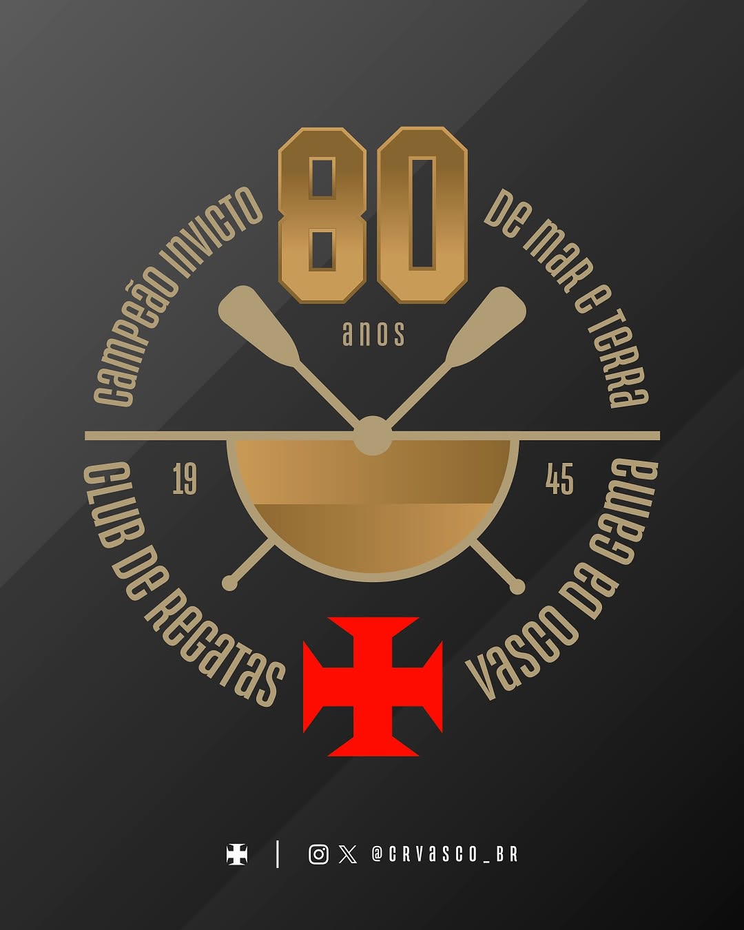 Há 80 anos, em 1945, o Vasco da Gama era Campeão Carioca de Futebol e de Remo, ambos 𝓲𝓷𝓿𝓲𝓬𝓽𝓸𝓼.