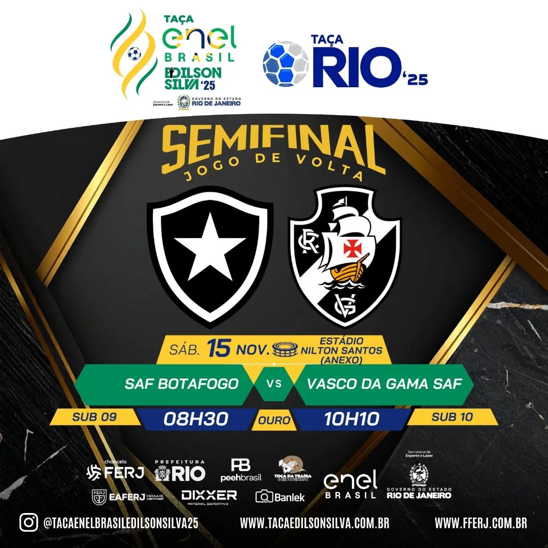 12/11/25 - Vasco está na final da Taça Rio contra o Fluminense no Sub-13 e contra o Urubu no Sub-14; jogos de ida serão neste fim de semana