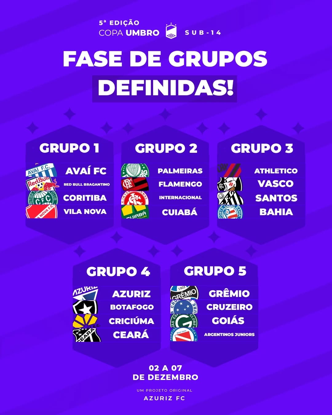 Grupos definidos para Copa Umbro 2025! ⚽️