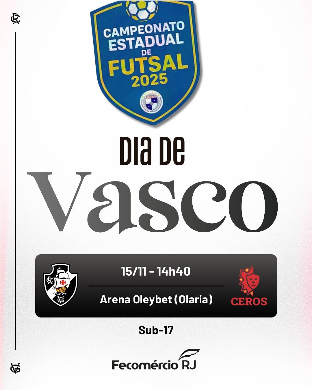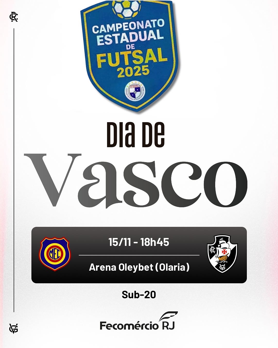 Futsal: Vasco disputa rodada tripla neste sábado pelo Estadual Sub-17, Sub-20 e profissional