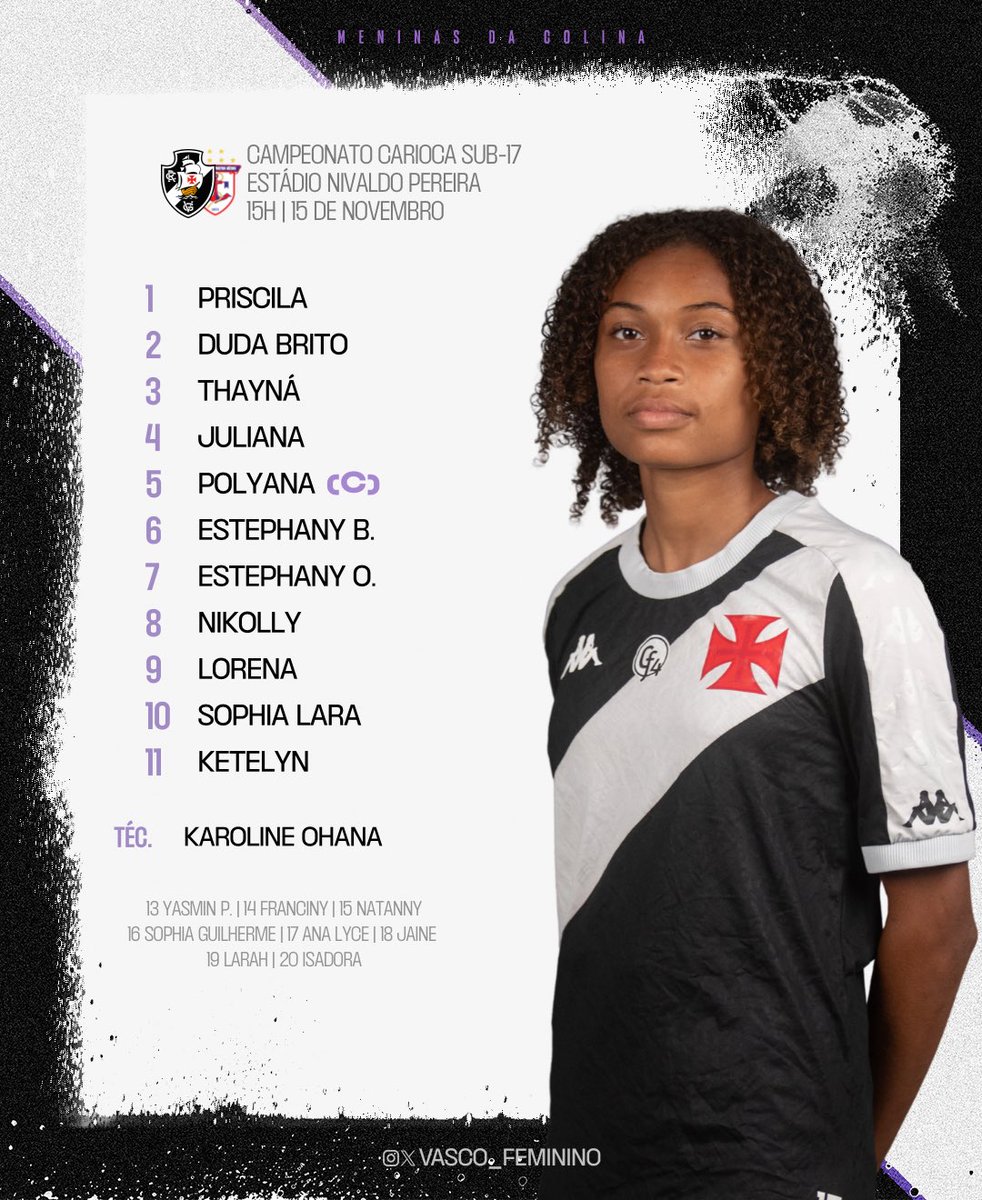 Confira a escalação das #CriasDaColina diante do Búzios, pela 3ª rodada do Carioca Sub-17! 🫡💢