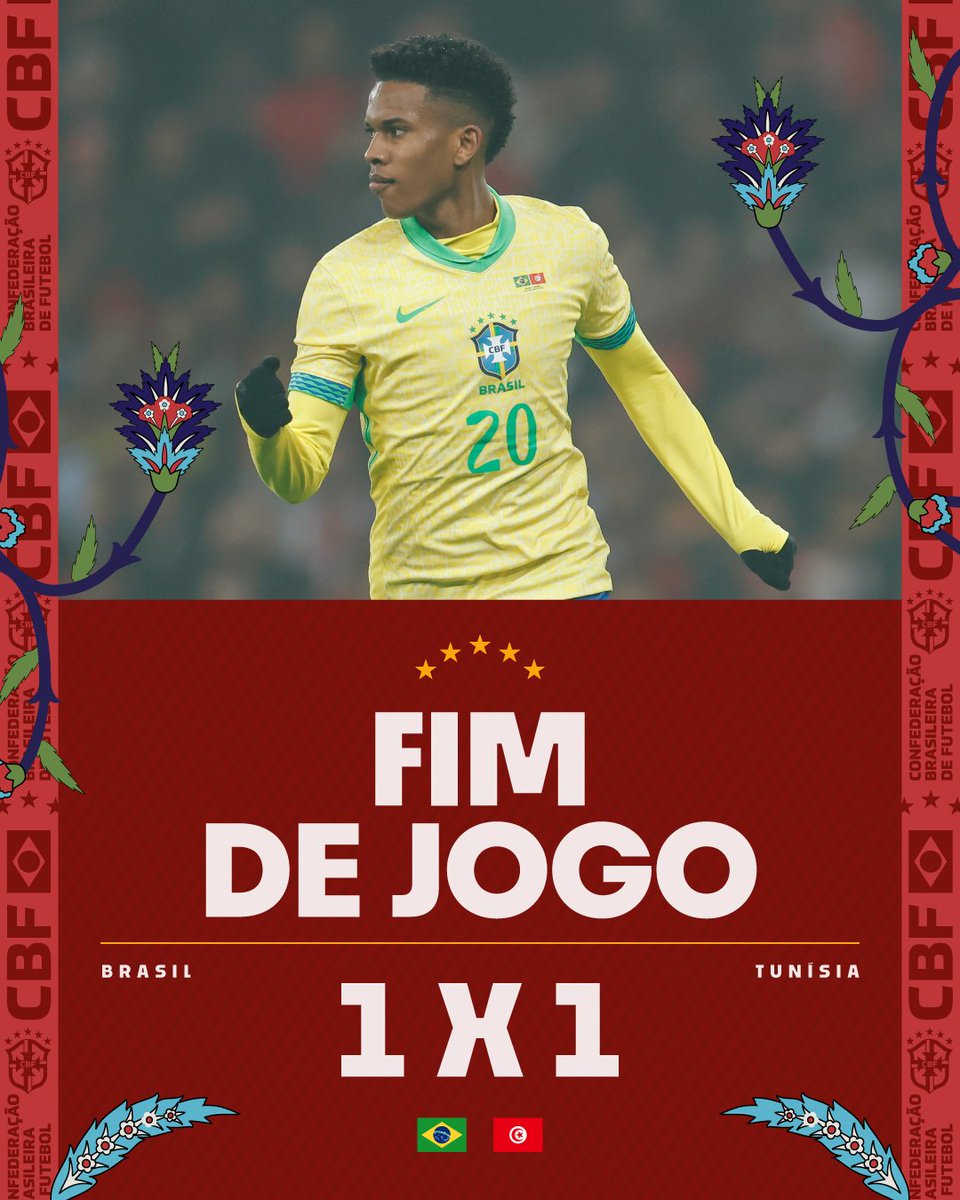 As inúmeras mudanças, porém, demoraram a surtir efeito. Assim, a Tunísia aproveitou o entrosamento para botar o Brasil na roda aos gritos de olé do torcedor. Mesmo com o mau momento na partida, os jogadores brasileiros ainda acreditaram na virada. Não à toa, Vini Jr roubou bola no campo de ataque, Vitor Roque brigou pela sobra e sofreu pênalti de Sassi, aos 32′. Dessa vez, Lucas Paquetá foi para a cobrança: chute por cima do gol. Dessa forma, o Brasil até seguiu na busca pela vitória até os momentos finais – incluindo bola na trave de Estêvão no último lance – com a Tunísia fazendo excelente trabalho para fechar a porta e garantir o 1 a 1 na Decathlon Arena.
