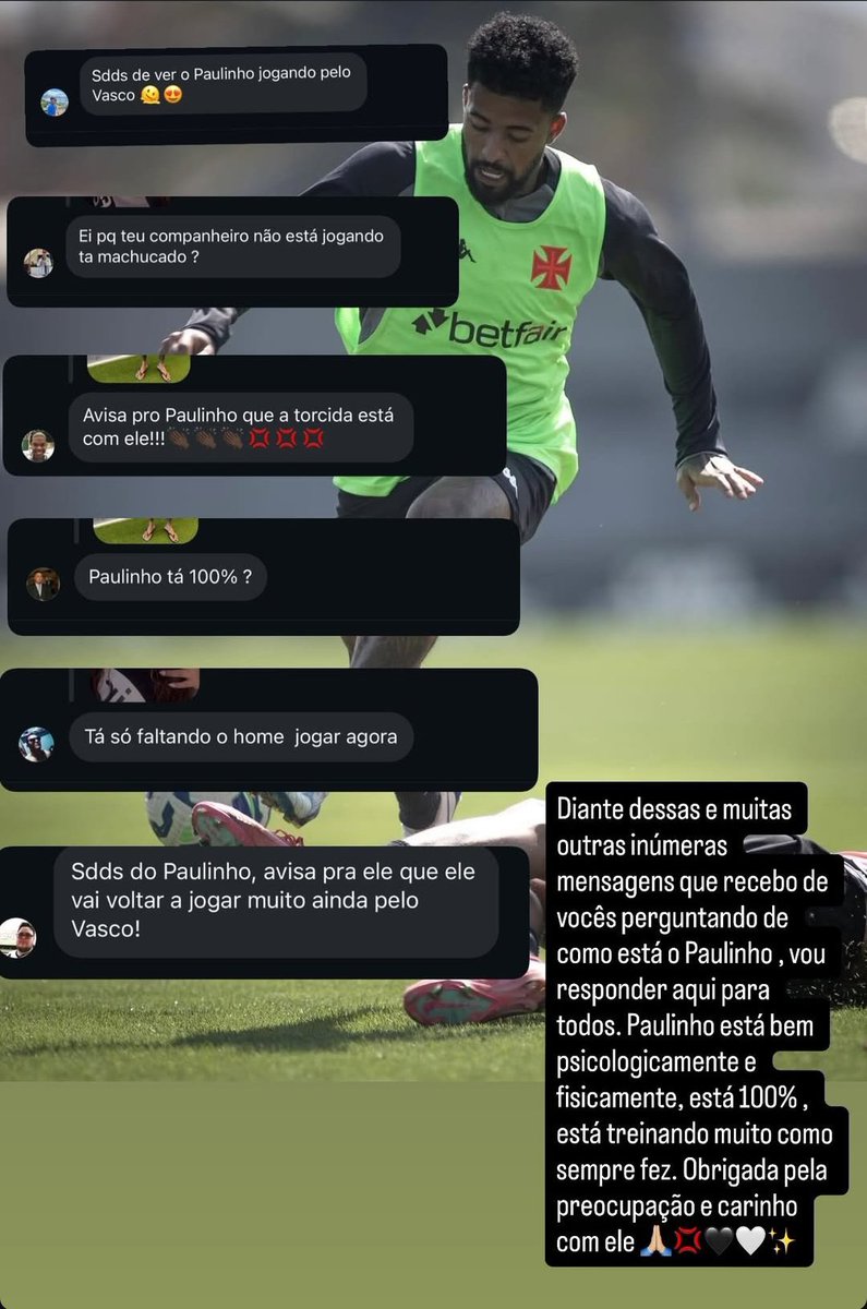 A esposa do volante Paulinho "atualizou" a situação do jogador: