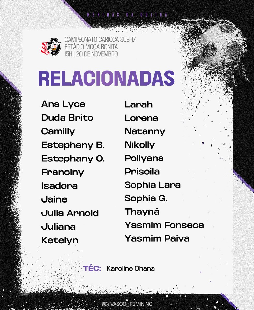 📋 Confira a lista de relacionadas para o duelo contra o Bangu, válido pela 4ª rodada do Carioca Sub-17, às 15h! 💢