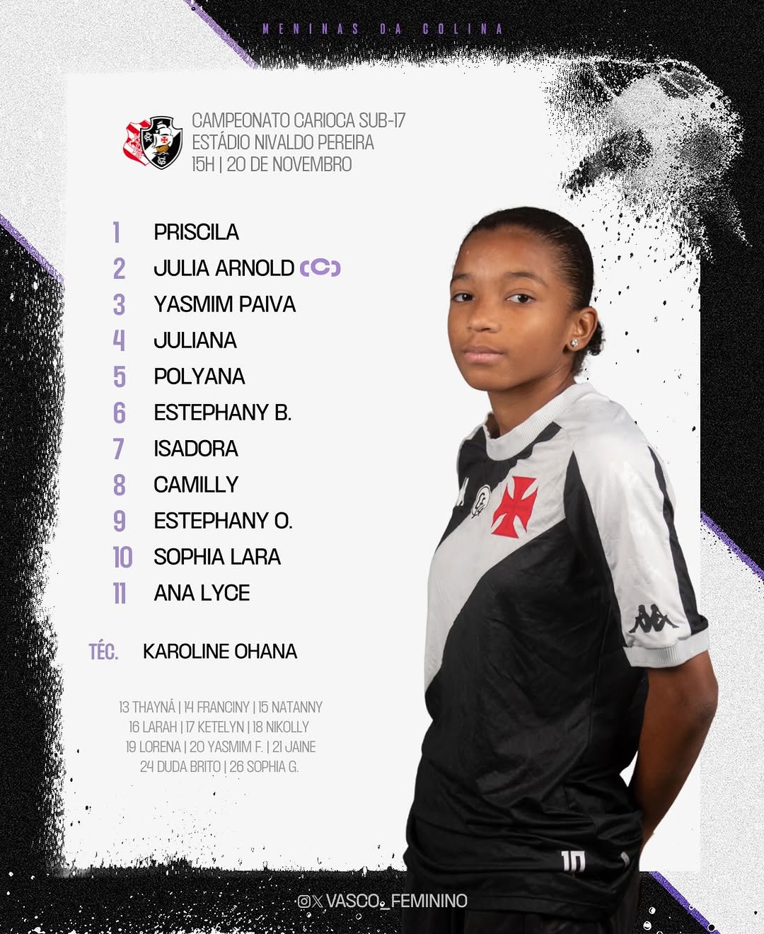 Feminino Base: Confira a escalação do Vasco para o jogo contra o Bangu pelo Carioca Sub-17