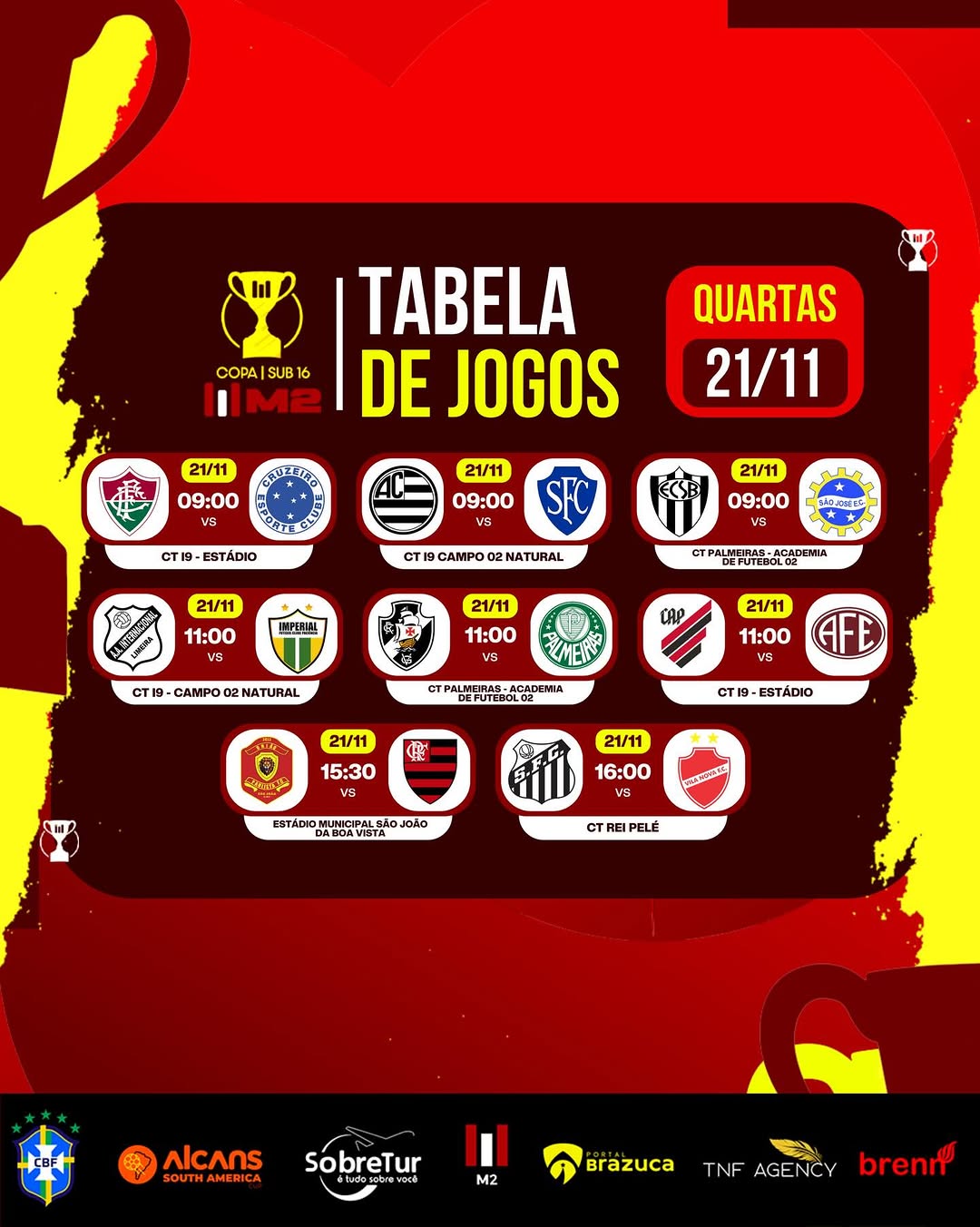As quartas de final da Copa M2 Sub-16 está definida e promete grandes duelos.