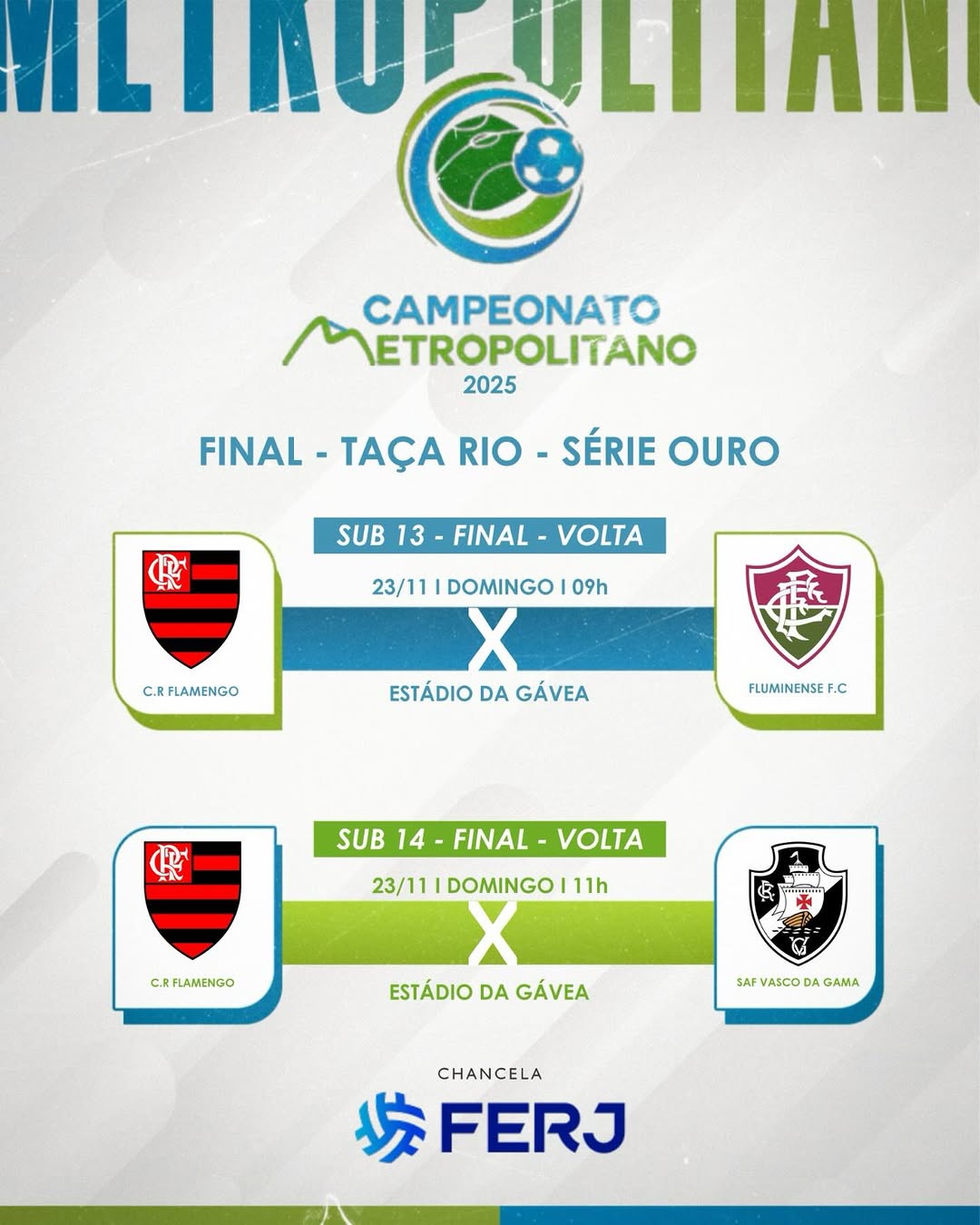 No Sub-13, o Flamengo recebe o Fluminense. Já no Sub-14 o Flamengo recebe o Vasco da Gama. Ambas as partidas acontecerão no Estádio da Gávea, as 9h e 11h, respectivamente.