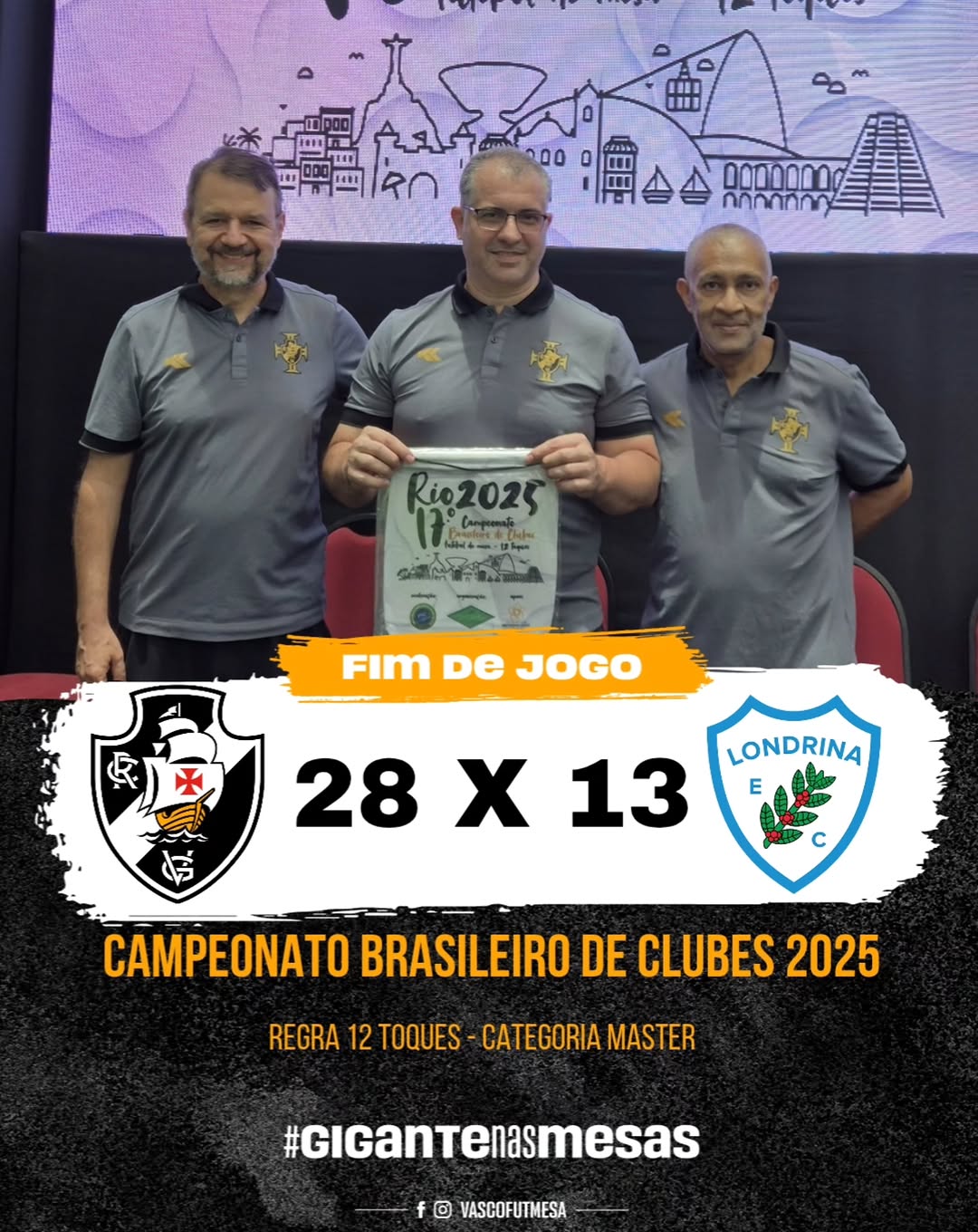Futmesa: Vasco está na semifinal do Brasileiro de Bola 12 Toques no Adulto e no Master