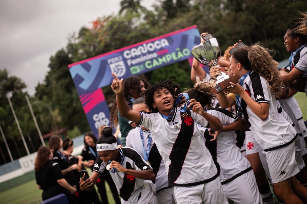 Neste domingo (23), o Vasco Feminino Sub-17 garantiu, de maneira invicta, o título do Carioca após definição da última rodada da competição. As Crias da Colina venceram o Barcelona EC por 6 a 1, com gols de Polyana, Estephany Brito, Ana Lyce, Isadora – artilheira Cruzmaltina no campeonato com 6 gols – Estephany Oliveira e Jaine.
