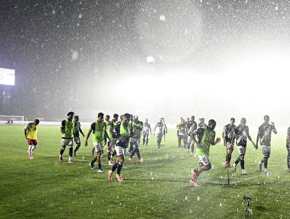 Já durante a reta final do primeiro tempo, a chuva era forte no Rio de Janeiro, atrapalhando a partida. O primeiro tempo foi encerrado nesse cenário, e durante o intervalo a situação continuou a mesma. Após a volta do intervalo, sem condições para bola rolar no gramado, a paralisação durou 1h30, os clubes negaram a voltar, mas a bola voltou a rolar..