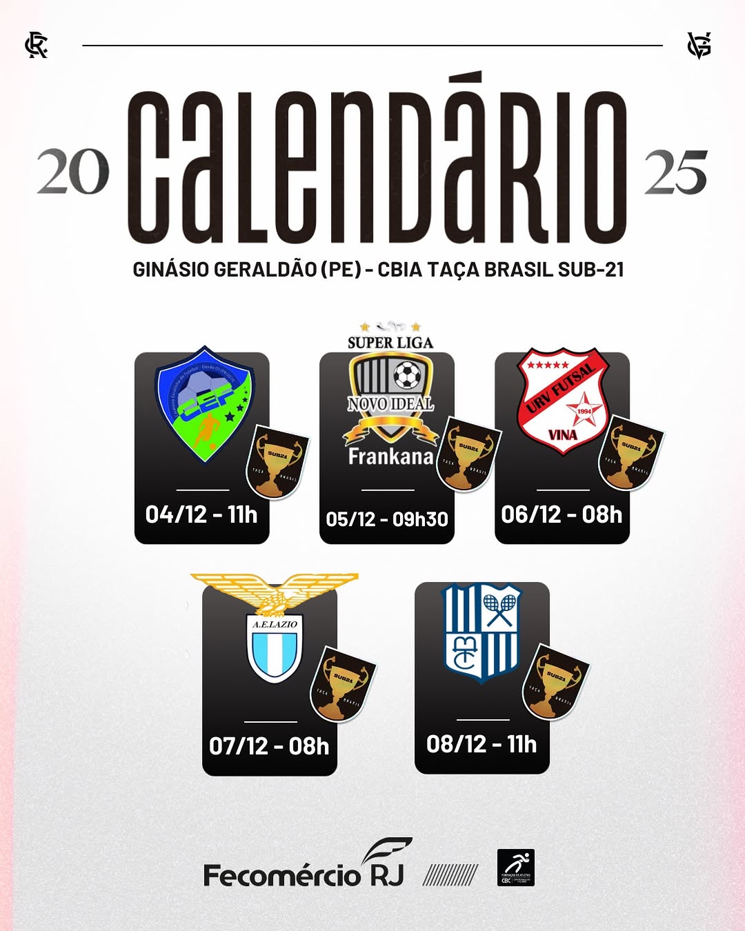 Futsal: Vasco estreia na Taça Brasil Sub-21 nesta 5ª às 11h contra o CEF Caratoira-ES em Recife; veja a tabela