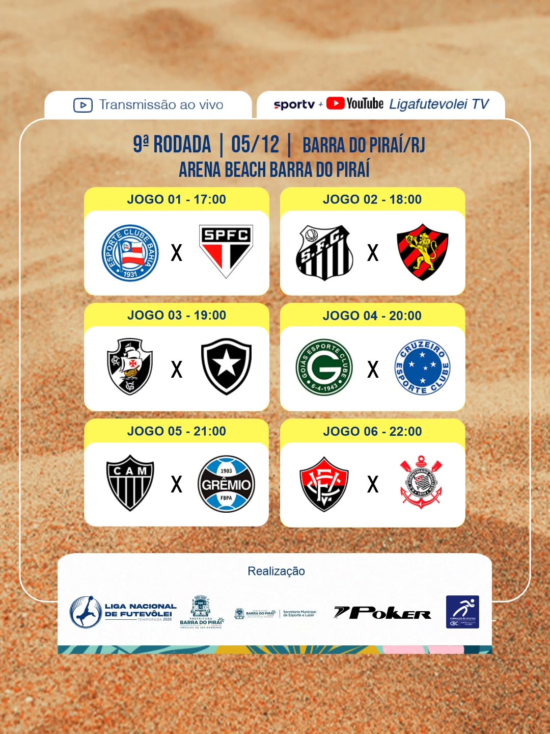 A Arena Beach Barra do Piraí recebe no dia 05/12 mais um capítulo eletrizante da Liga Nacional de Futevôlei.