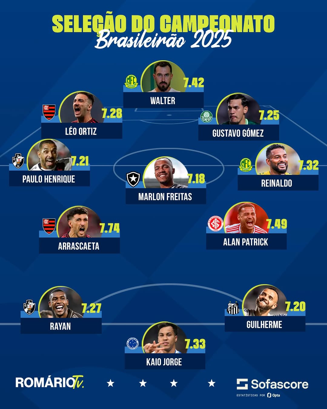 Esses foram os melhores jogadores do Brasileirão em cada posição, segundo as notas SofaScore. SERÁ QUE ESSE TIME DÁ LIGA? 👀🤣