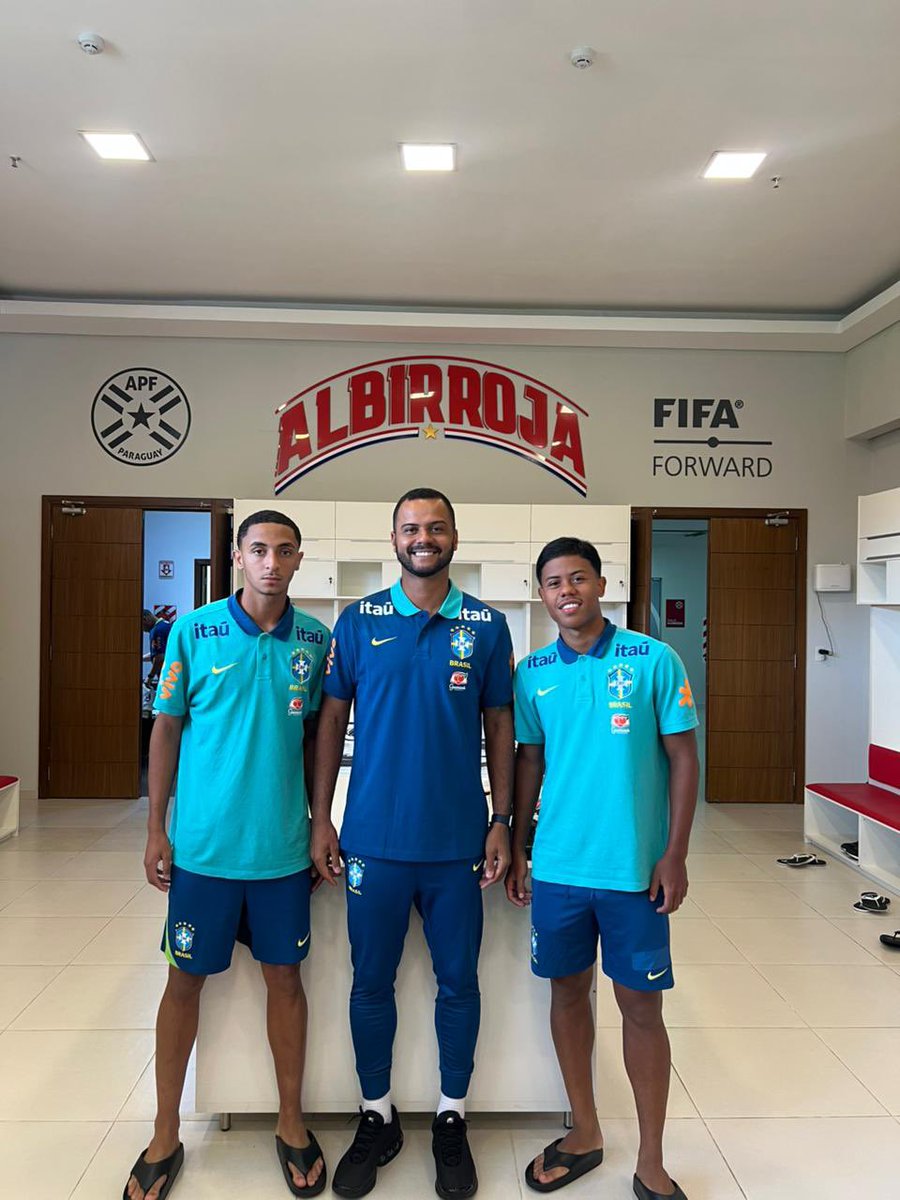Breno Sales, Lorenzzo e o preparador de goleiros Fabrício Macêdo estão com a Seleção Brasileira Sub-17 no Paraguai