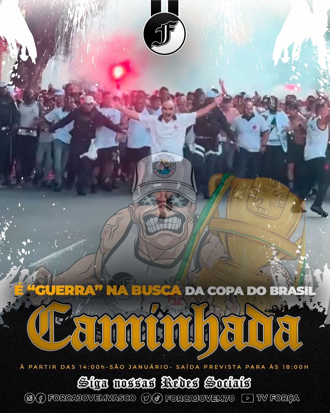 A festa já começa na caminhada, com surpresas, energia lá em cima e a vibração que só a Força Jovem sabe fazer.