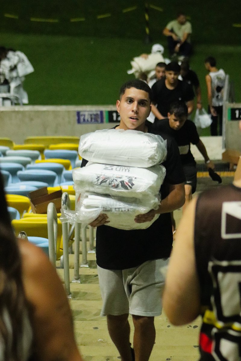 Torcedores Vascaínos estão no Maracanã, organizando as arquibancadas, para a festa de amanhã.