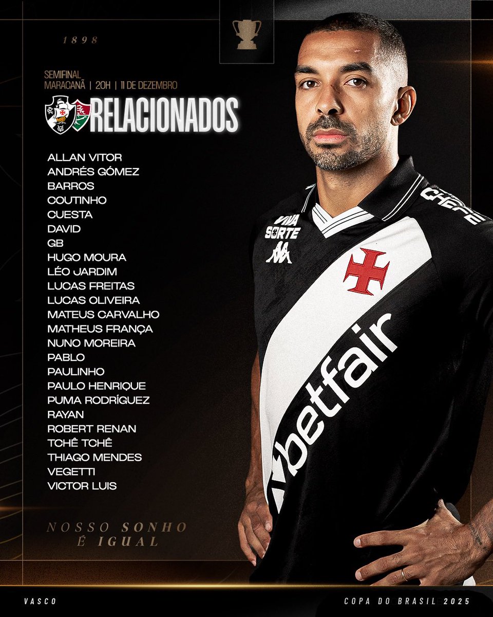 📋 OS RELACIONADOS DO VASCO DA GAMA PARA O CLÁSSICO NA COPA DO BRASIL! 💢