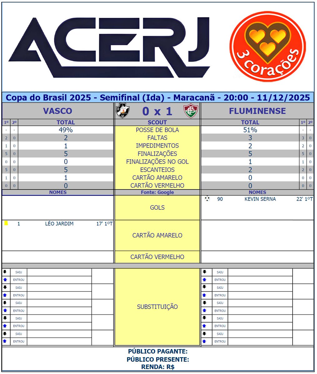 Scout do 1º Tempo de Vasco e Fluminense pelo jogo de ida das semifinais da Copa do Brasil 2025 no Maracanã (Fonte: Google) #Acerjinforma #CopaBetanoDoBrasil #VASxFLU #VascodaGama #Fluminense @CopaDoBrasilCBF @VascodaGama @FluminenseFC