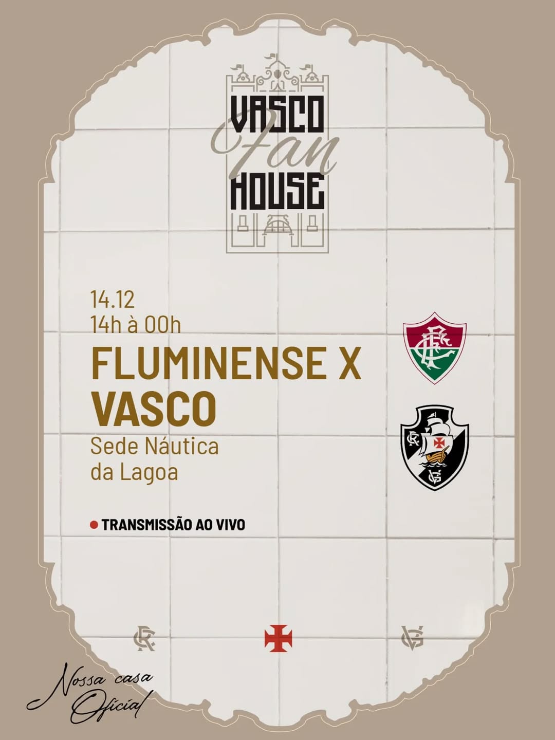 A Vasco Fan House está de volta para reunir sócios e convidados no clima decisivo da semifinal da Copa do Brasil. Uma experiência completa te espera: transmissão ao vivo em telão HD, ambiente festivo e toda a energia da torcida à beira da Lagoa. ⚫⚪💢