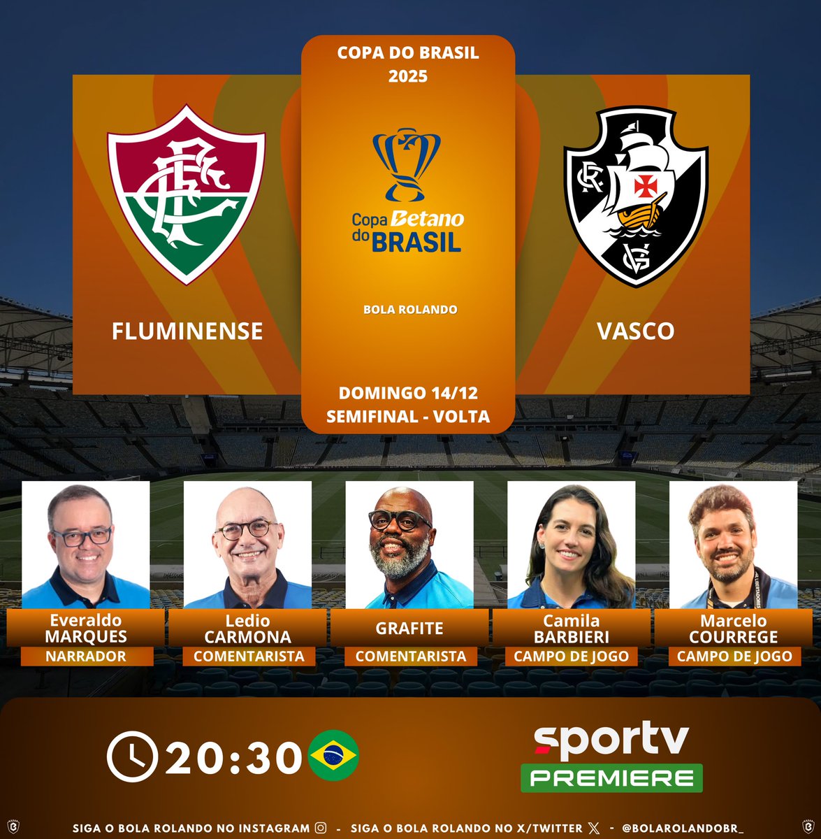 Confira os profissionais que trabalharão na transmissão de Fluminense x Vasco pela TV