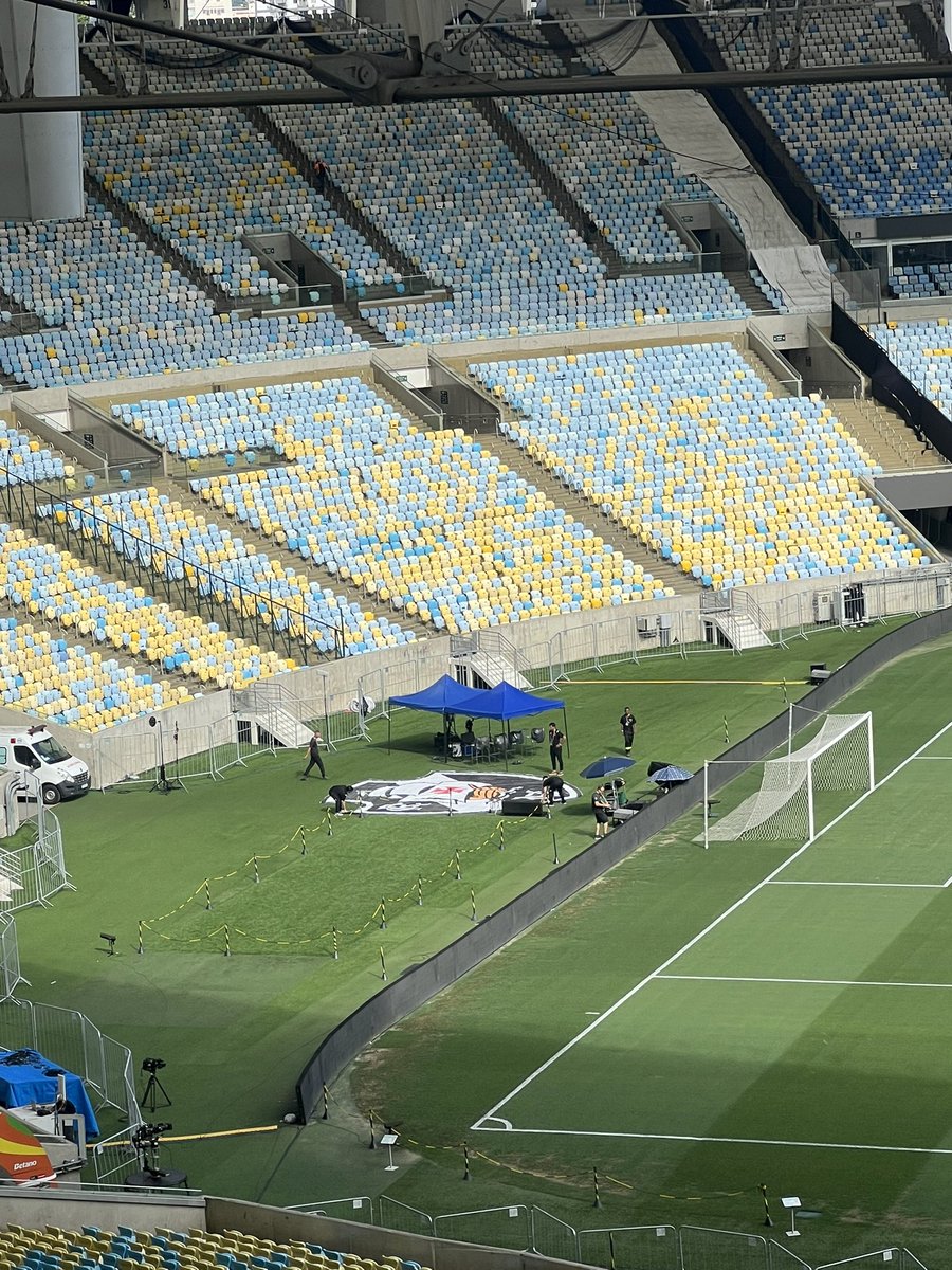 O escudo do Vasco está sendo posicionado em frente ao Setor Norte, onde ficará a torcida vascaína. Havia a dúvida se teríamos alguma referência ao clube dentro do estádio, já que o Fluminense é o mandante da partida.