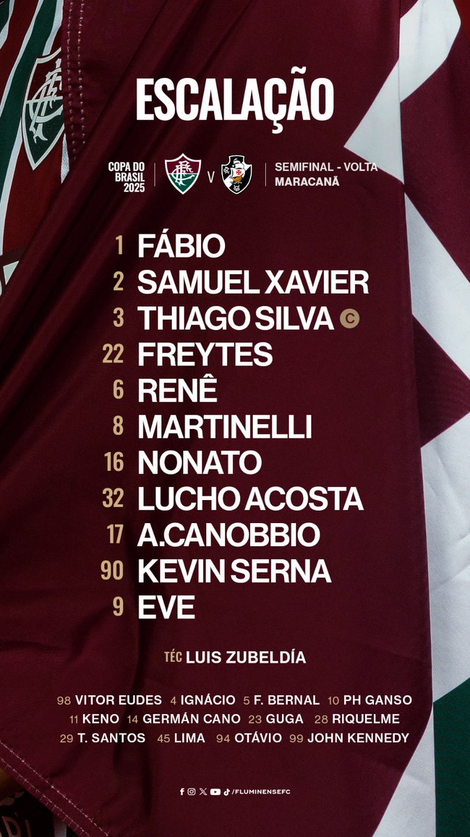Veja a escalação do Fluminense para o jogo contra o Vasco; Canobbio é a novidade na vaga de Soteldo