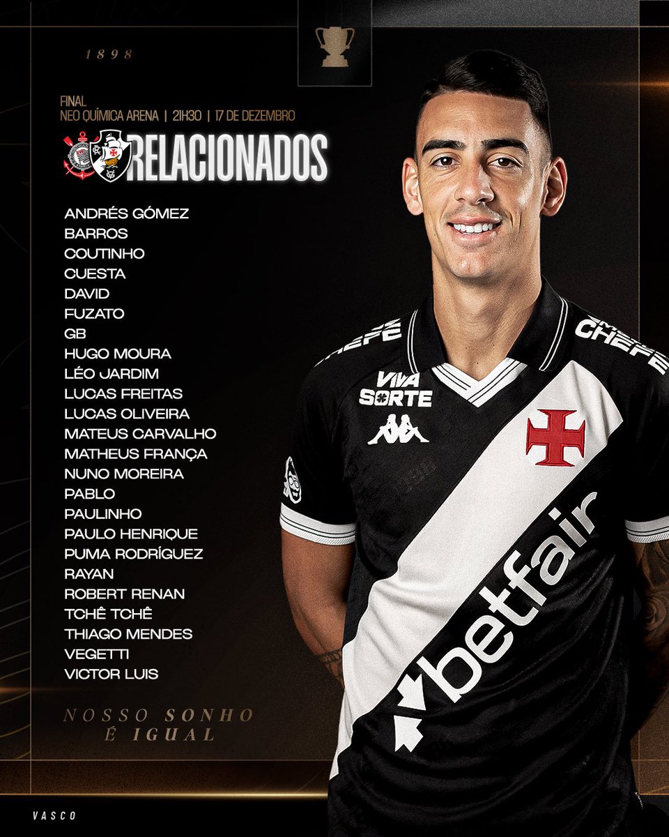Confira os relacionados do Vasco para o 1º jogo da final da Copa do Brasil