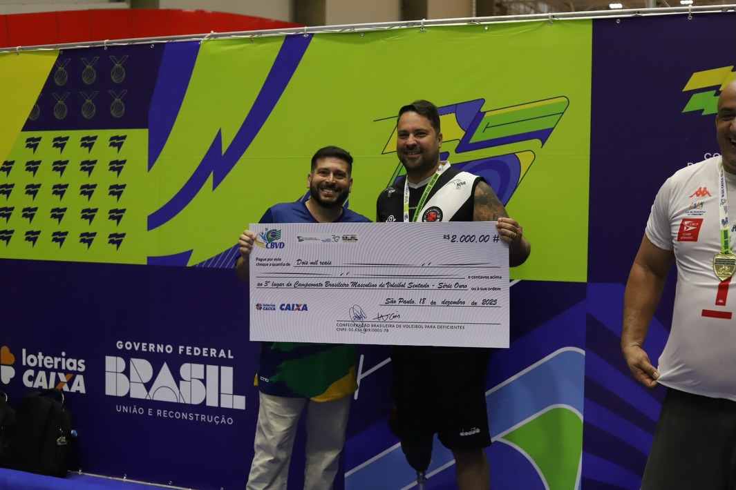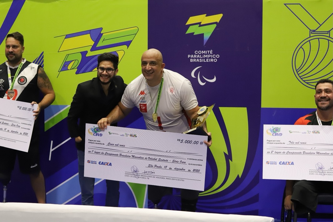 A emoção tomou conta da cerimônia de premiação do Campeonato Brasileiro Masculino de Vôlei Sentado – Série Ouro 2025, coroando uma competição marcada por alto nível técnico, jogos intensos e muita entrega em quadra.