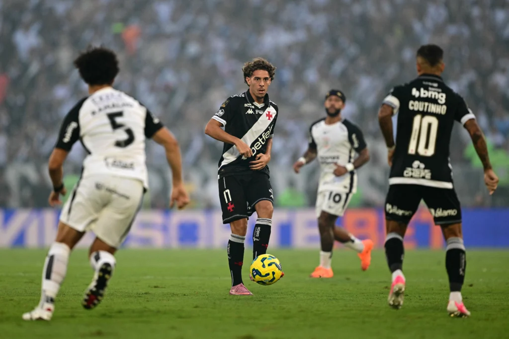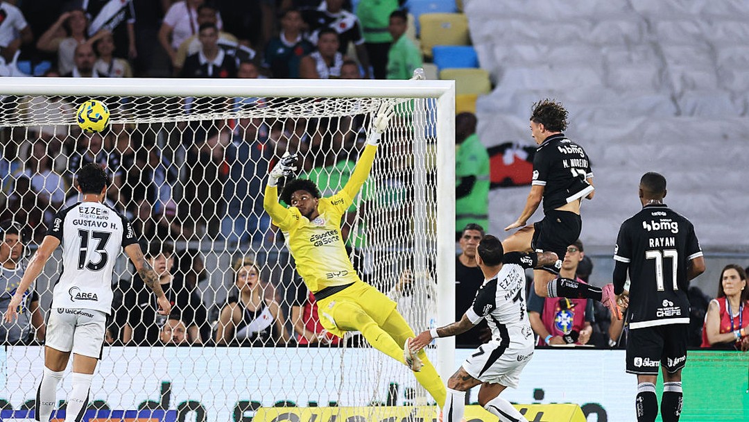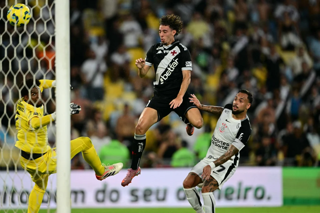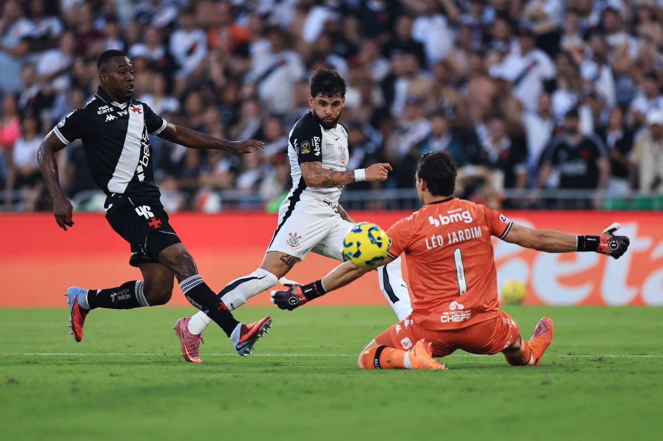 A partida no Maracanã começou como o esperado, com o Vasco com mais posse de bola e o Corinthians tentando ser agressivo nos contra-ataques. A primeira chegada foi aos 13 minutos em finalização de Yuri Alberto. Seis minutos depois, os paulistas saíram na frente. Matheuzinho deu belo lançamento, e desta vez o atacante do Corinthians dominou bem e finalizou sem chances de defesa para o goleiro Léo Jardim.