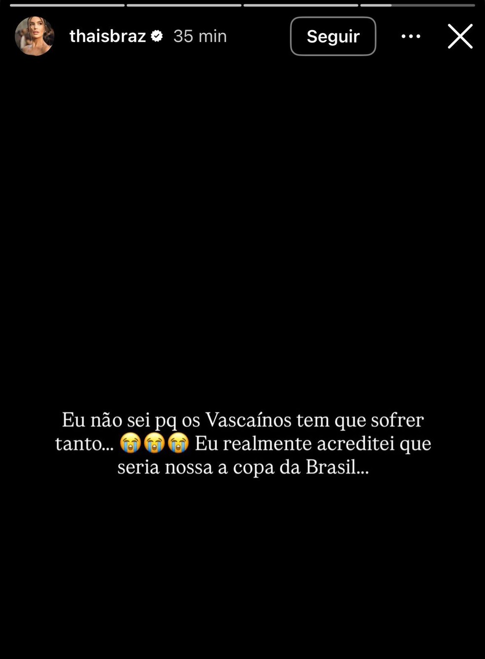 Não deu para o Vasco! O time levou a pior em jogo contra o Corinthians neste domingo (21), no Maracanã, perdeu de 2 x 1 e viu o título da Copa do Brasil escapar. Famosos torcedores que acompanharam apreensivos, tanto de casa quanto do estádio, lamentaram a derrota.