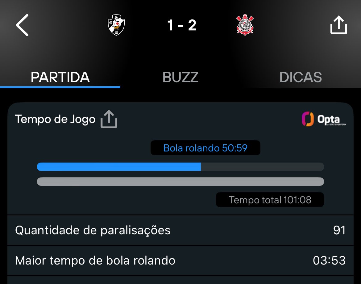 - O Corinthians gastou 09:15 em tiros de meta e o Hugo não ganhou amarelo