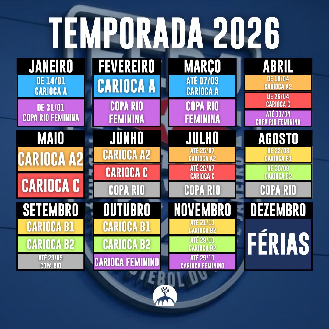 Foi divulgado pela FERJ, o calendário carioca em 2026.