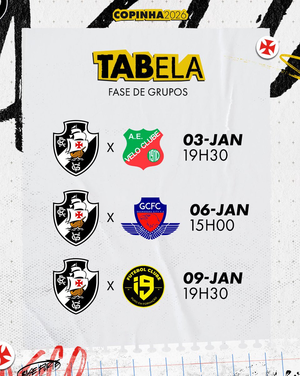 Sub-20: Confira a tabela do Vasco na fase de grupos da Copinha 2026