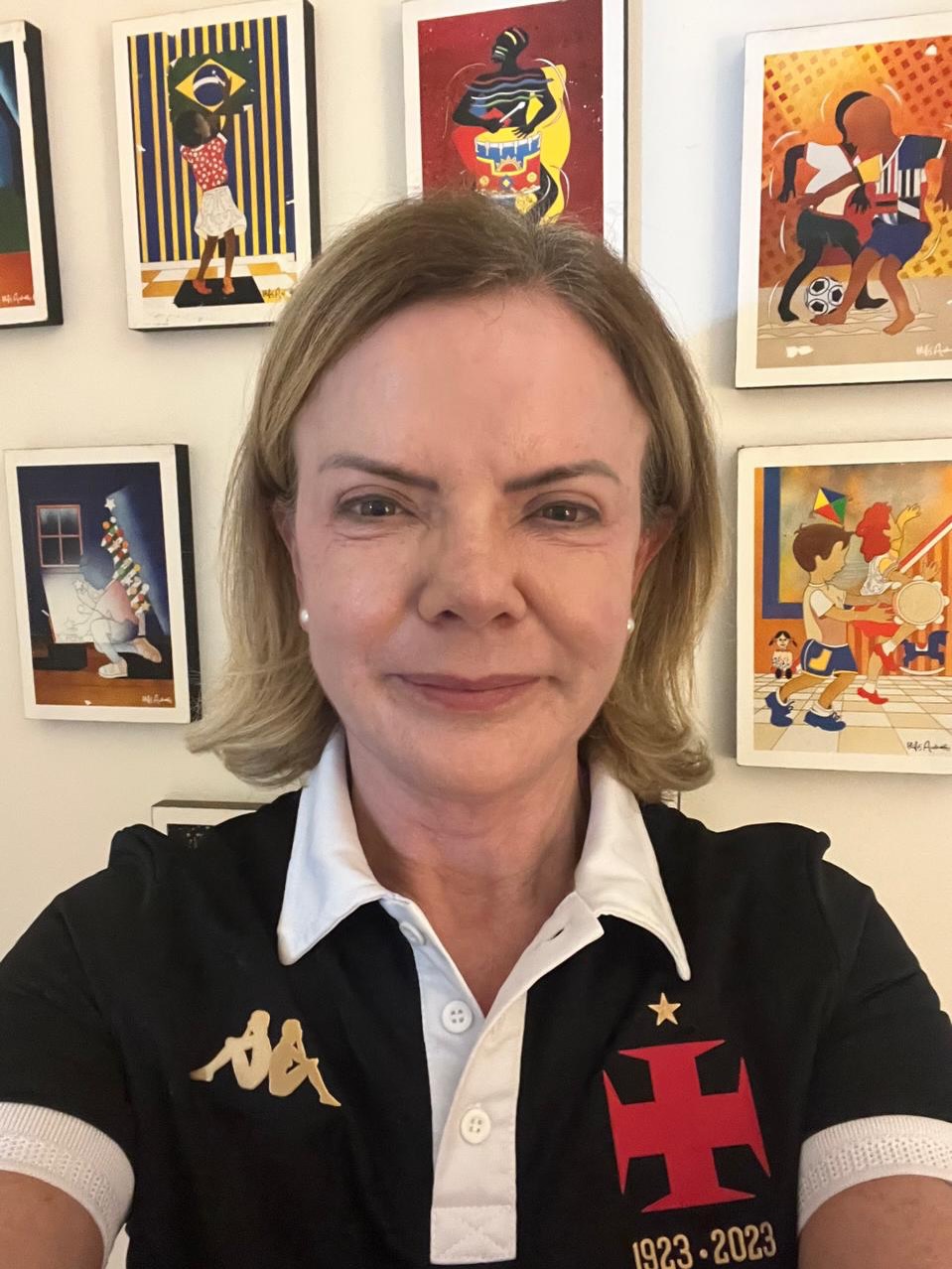 Vascaíno, deputado federal Lindbergh Farias postou fotos dele e da ministra Gleisi Hoffmann com camisa do Vasco: 'Isso é amor'