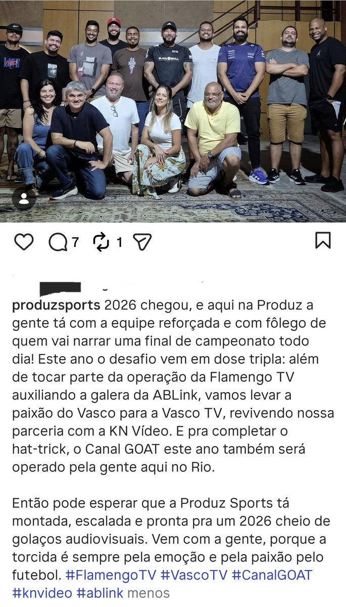 A Vasco TV terá em 2026 a operação técnica da Produz Sports. Mesma produtora que já faz parte da Flamengo TV e do canal GOAT. A empresa fez essa publicação nas redes sociais anunciando que assumirá essa área da Vasco TV. A antiga já tirou todo o equipamento de SJ.